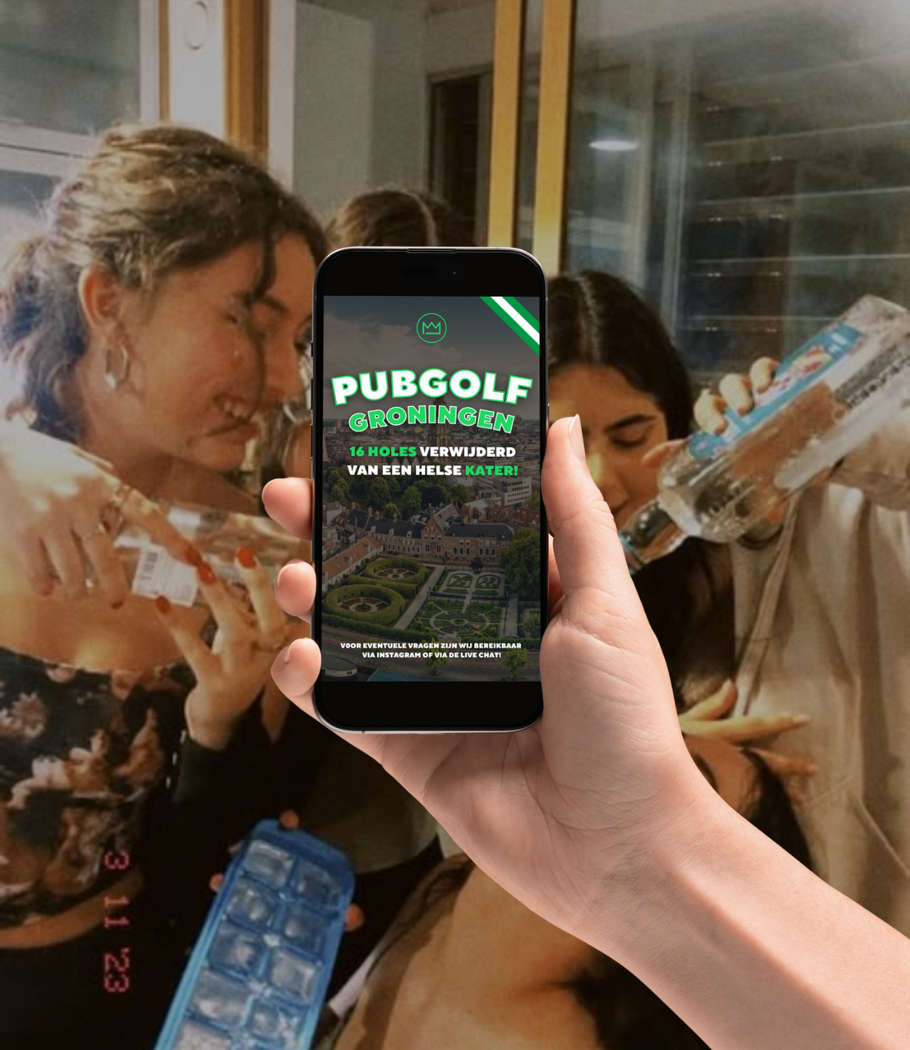Pubgolf is dé ultieme kroegentocht gecombineerd met een spel element! Net als bij minigolf probeer je bij iedere ‘hole’ (kroeg) zo min mogelijk slagen (drankjes) te maken. Het is dé perfecte manier om een gezellige avond met vrienden naar een hoger niveau te tillen!